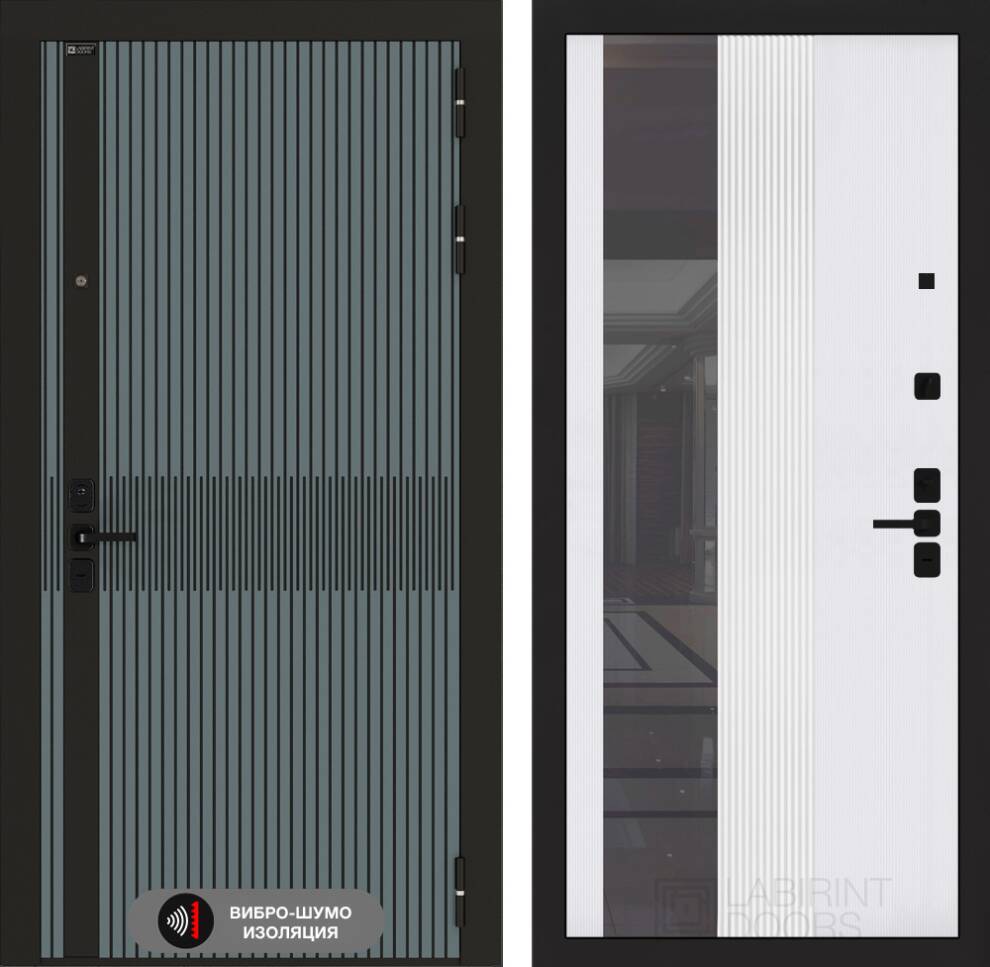 Входная дверь ART LT-01 | внутри с Зеркалом 32 тонированным - Белый рельеф софт
