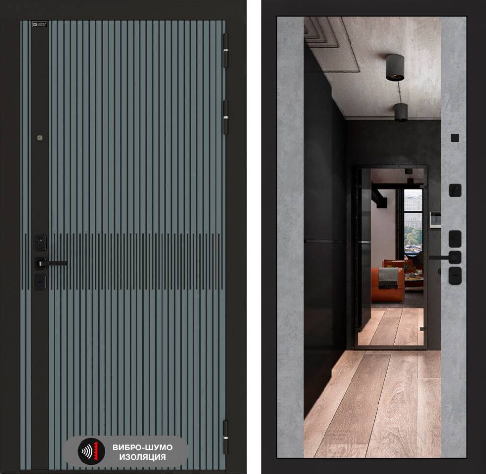 Входная дверь ART LT-01 | внутри с Зеркалом Максимум - Бетон светлый