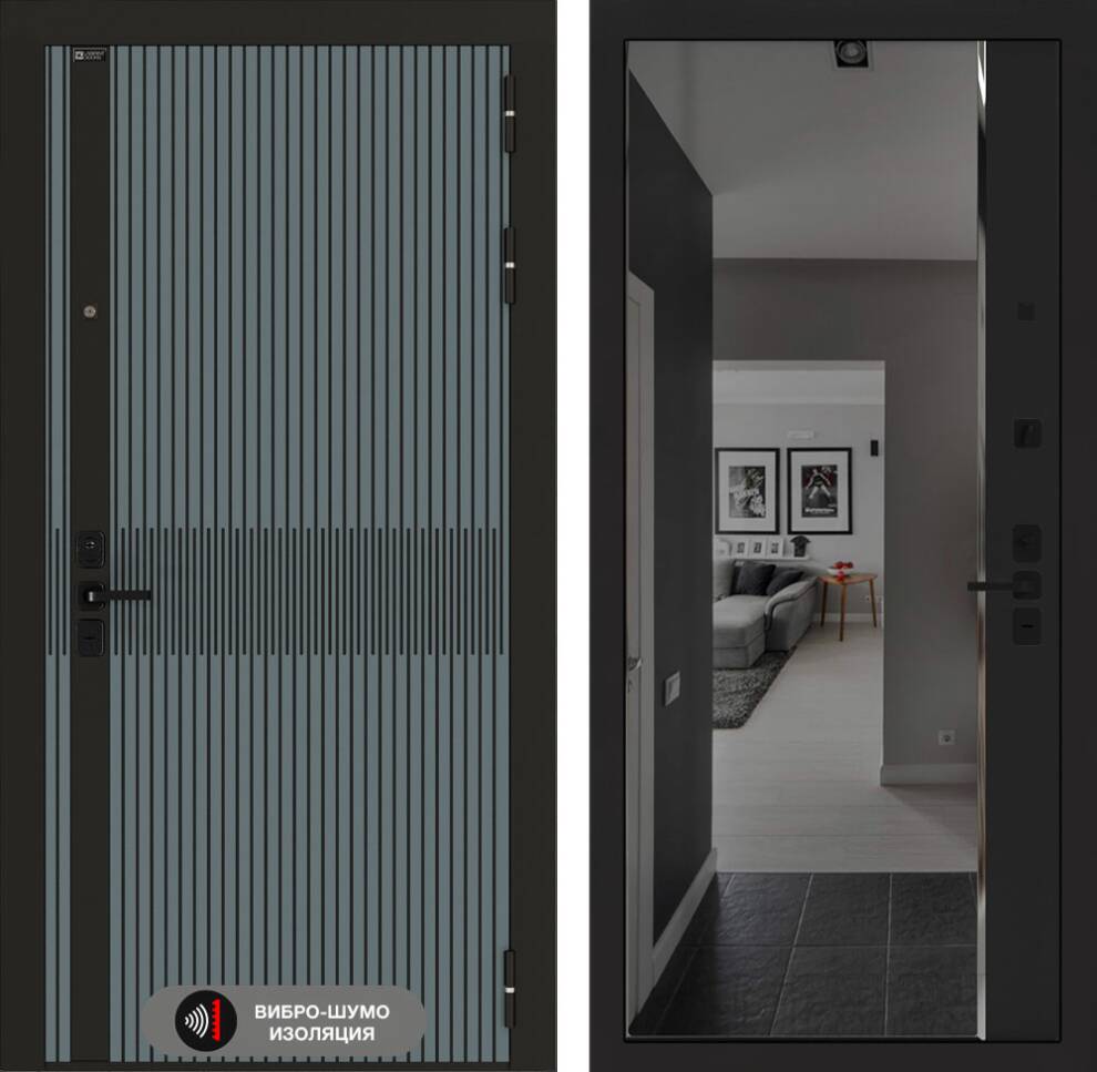 Входная дверь ART LT-01 | внутри с зеркалом Панорама с тонировкой - Черный кварц