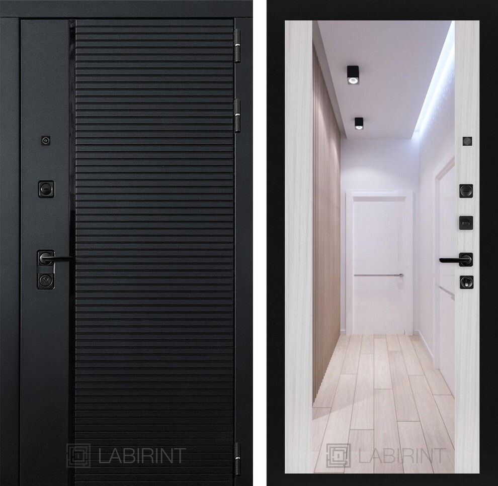 Входная дверь ART LT-02 | внутри с зеркалом Максимум - Сандал белый