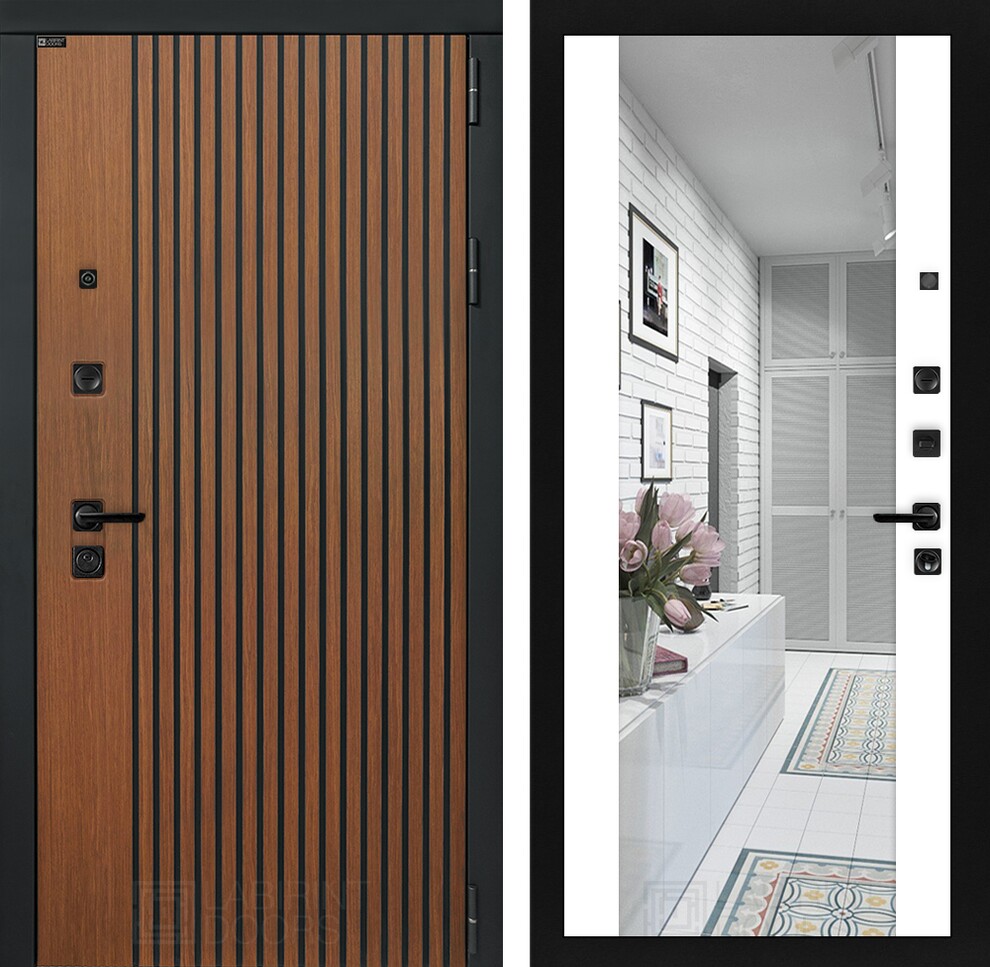 Входная дверь ART LT-03 | внутри с Зеркалом Максимум - Белый софт