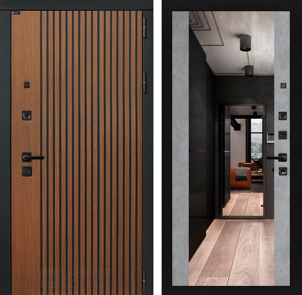 Входная дверь ART LT-03 | внутри с Зеркалом Максимум - Бетон светлый