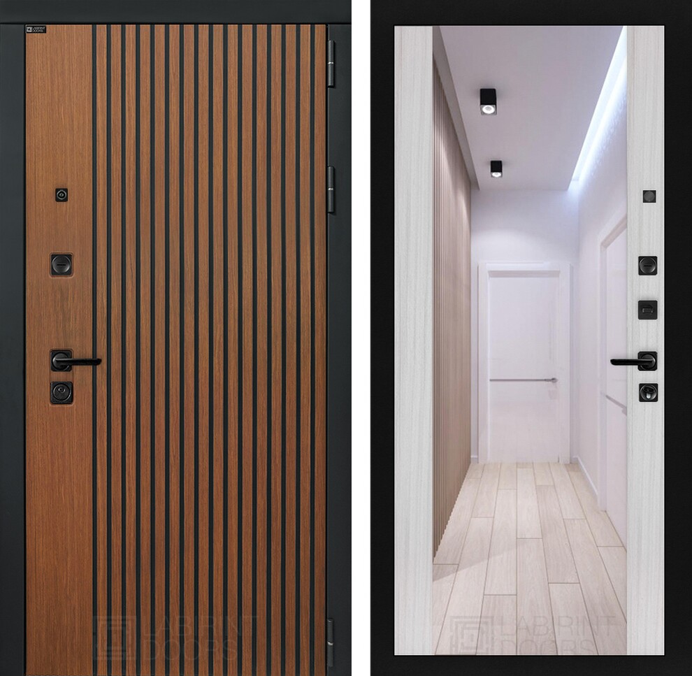 Входная дверь ART LT-03 | внутри с Зеркалом Максимум - Сандал белый