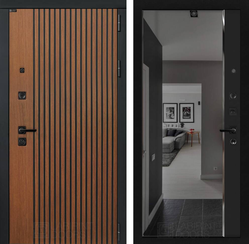 Входная дверь ART LT-03 | внутри с зеркалом Панорама с тонировкой - Черный кварц