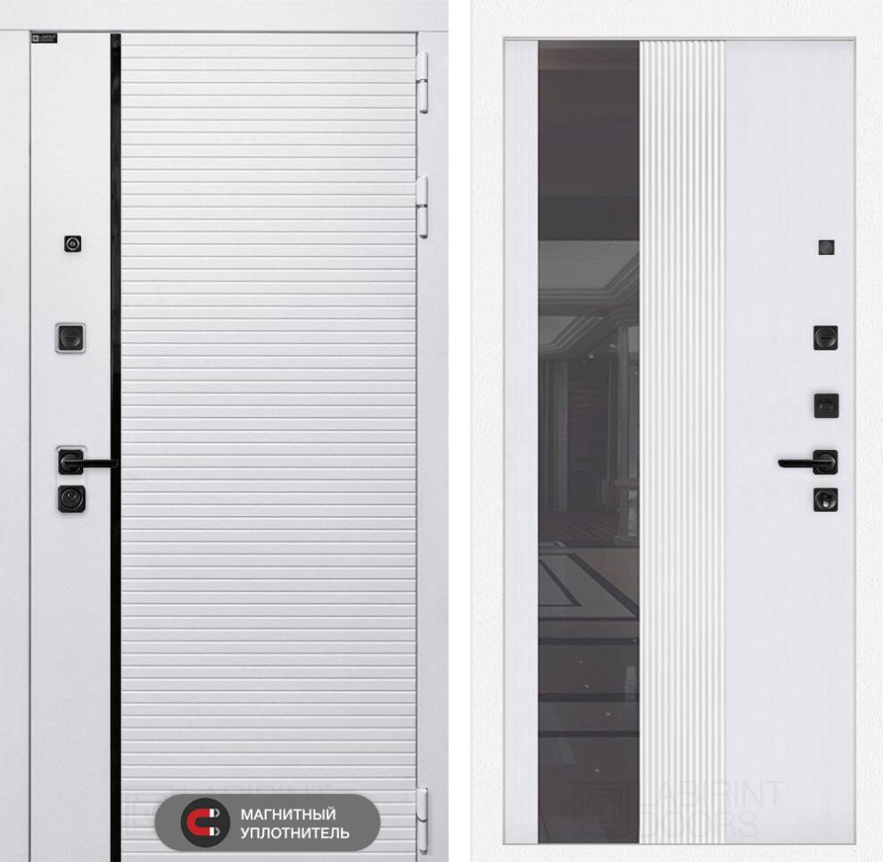 Входная дверь ART LT-04 | внутри с Зеркалом 32 тонированным - Белый рельеф софт