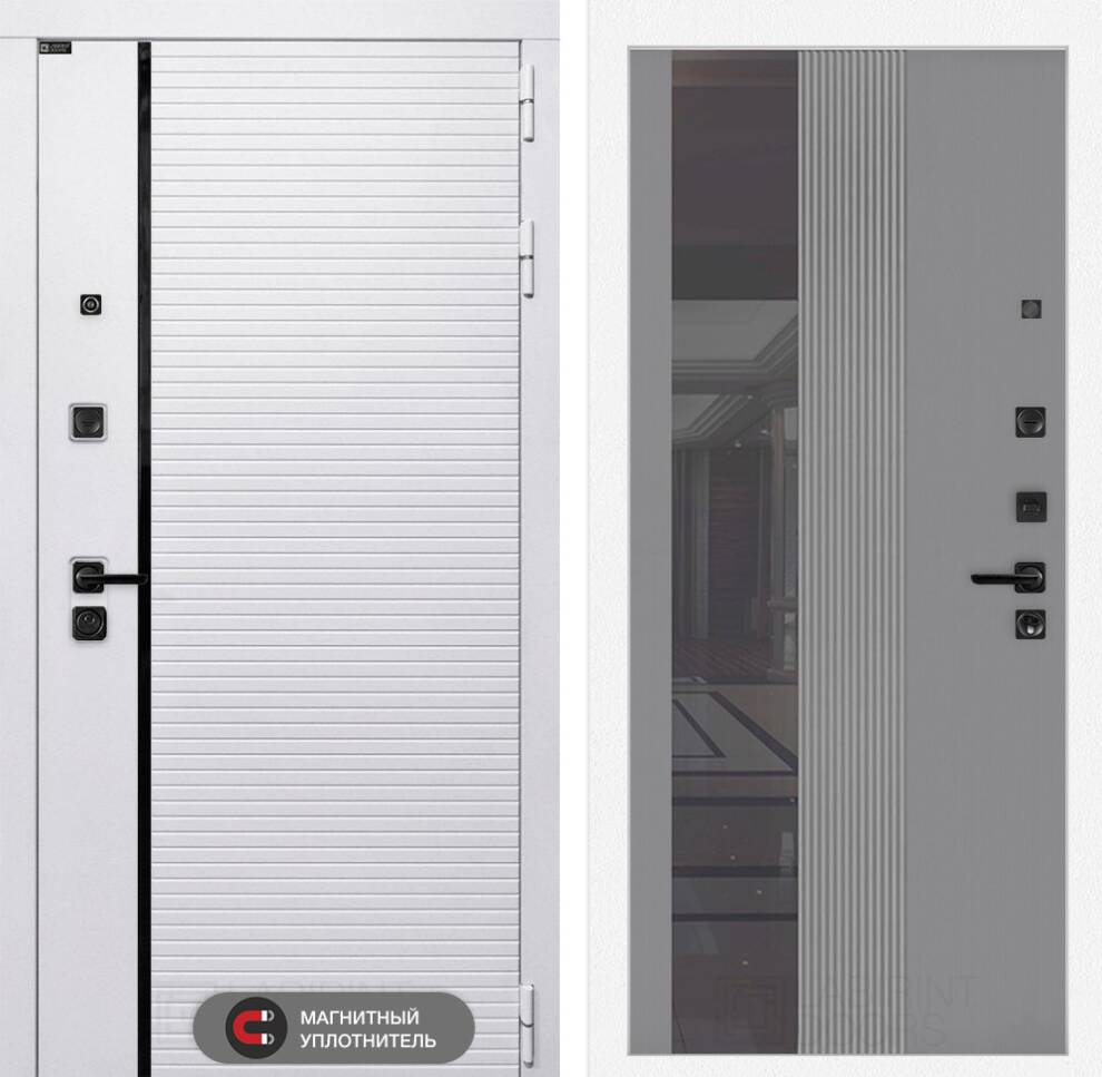 Входная дверь ART LT-04 | внутри с Зеркалом 32 тонированным - Серый рельеф софт
