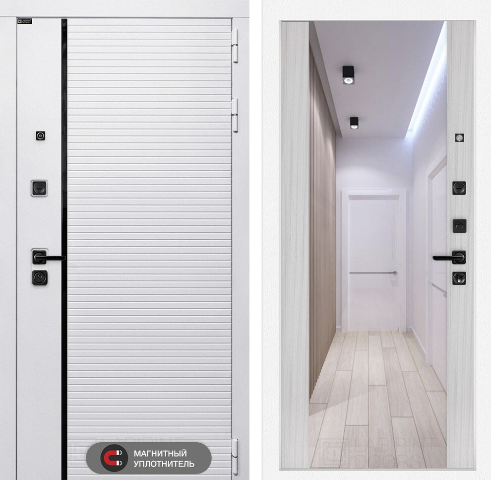 Входная дверь ART LT-04 | внутри с Зеркалом Максимум - Сандал белый