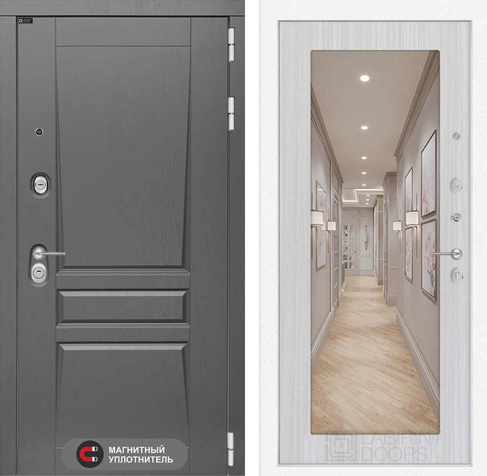 Входная дверь ART LT-05 | внутри с Зеркалом 18 - Сандал белый