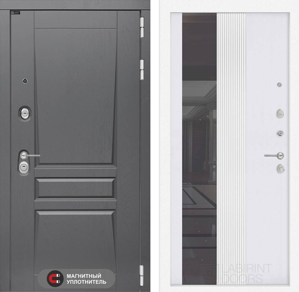 Входная дверь ART LT-05 | внутри с Зеркалом 32 тонированным - Белый рельеф софт