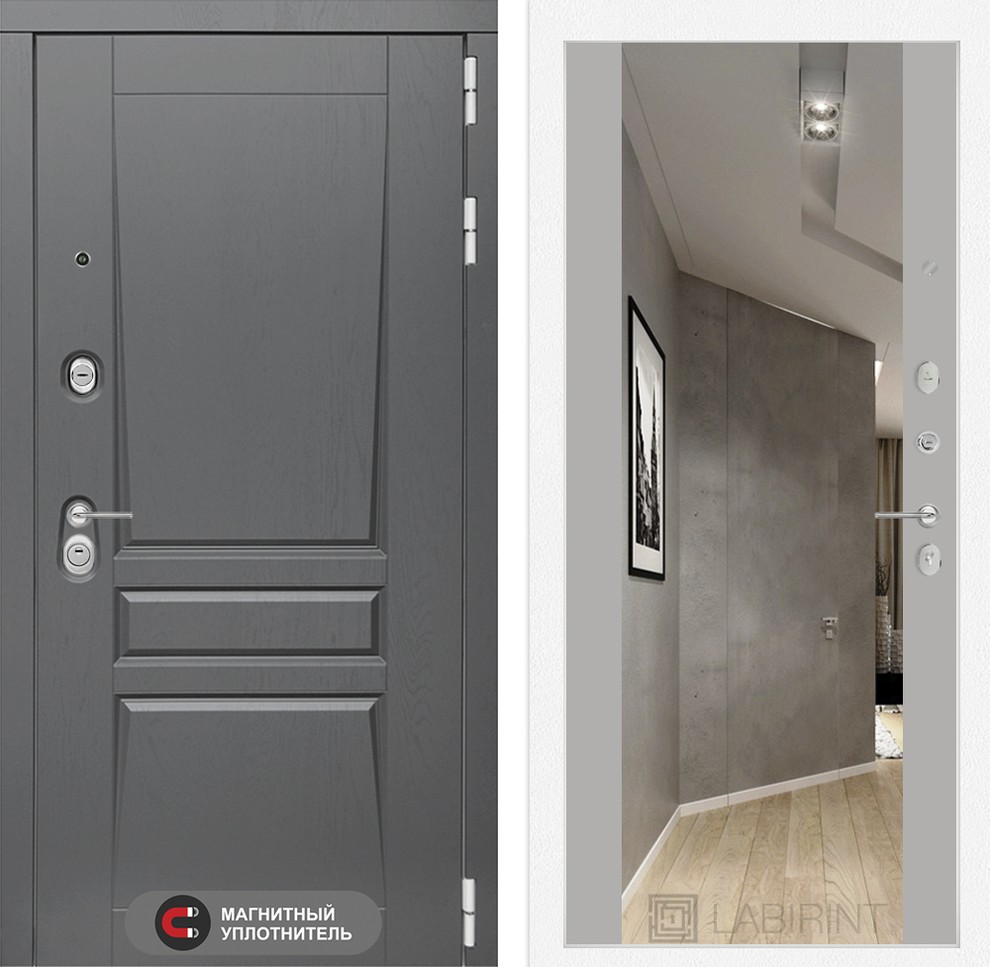 Входная дверь ART LT-05 | внутри с Зеркалом Максимум - Грей софт