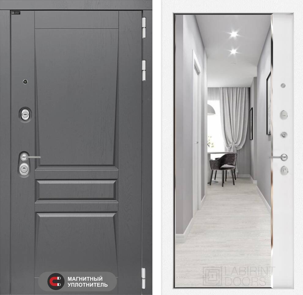Входная дверь ART LT-05 | внутри с зеркалом Панорама - Белый софт