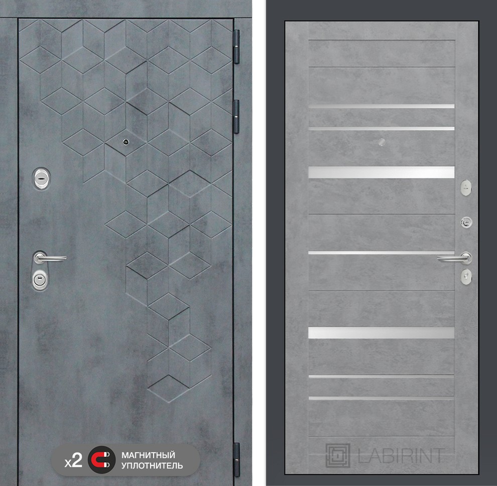 Входная дверь ART LT-06 | внутри 20 - Бетон светлый, зеркальные вставки
