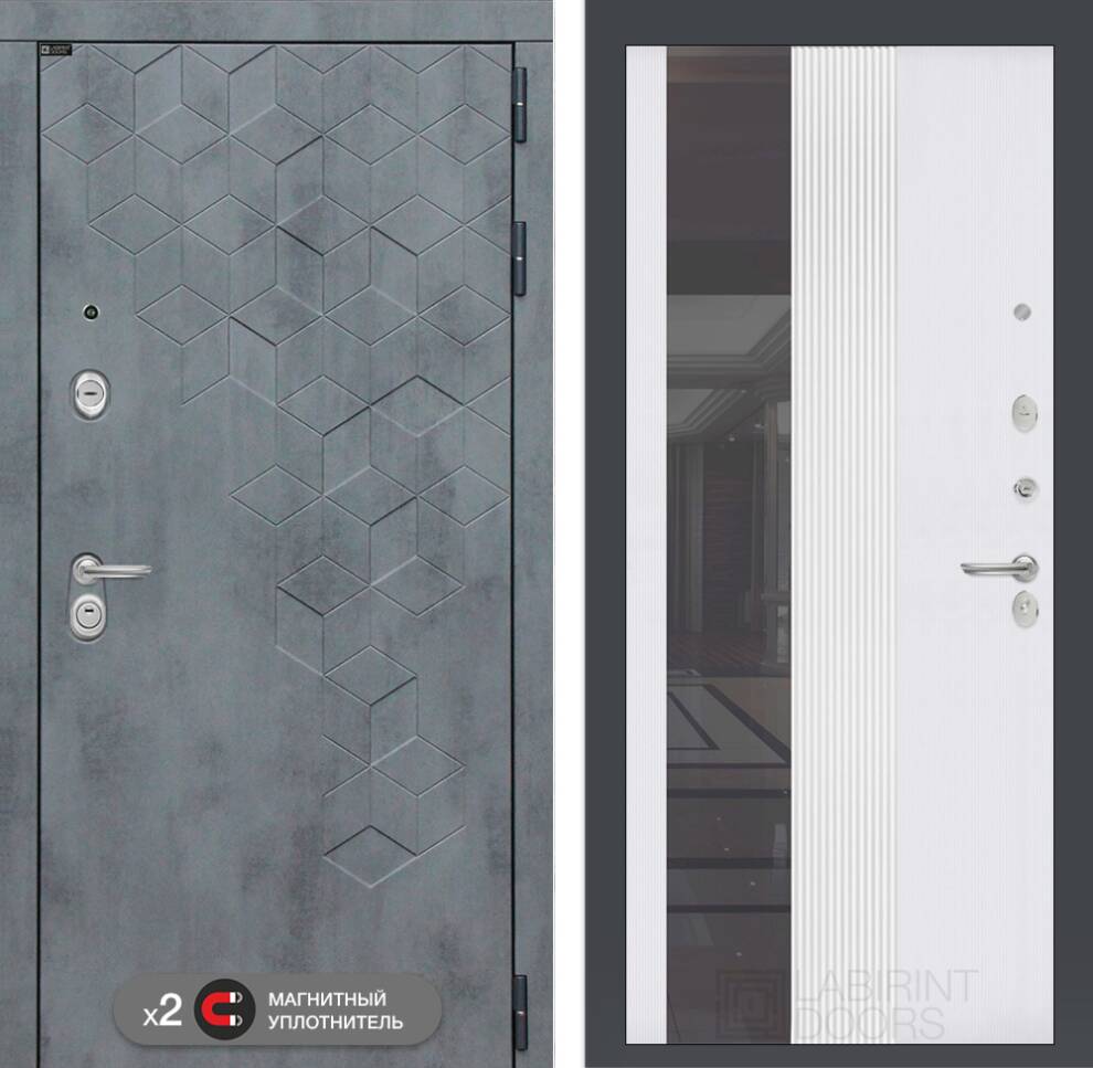 Входная дверь ART LT-06 | внутри с Зеркалом 32 тонированным - Белый рельеф софт