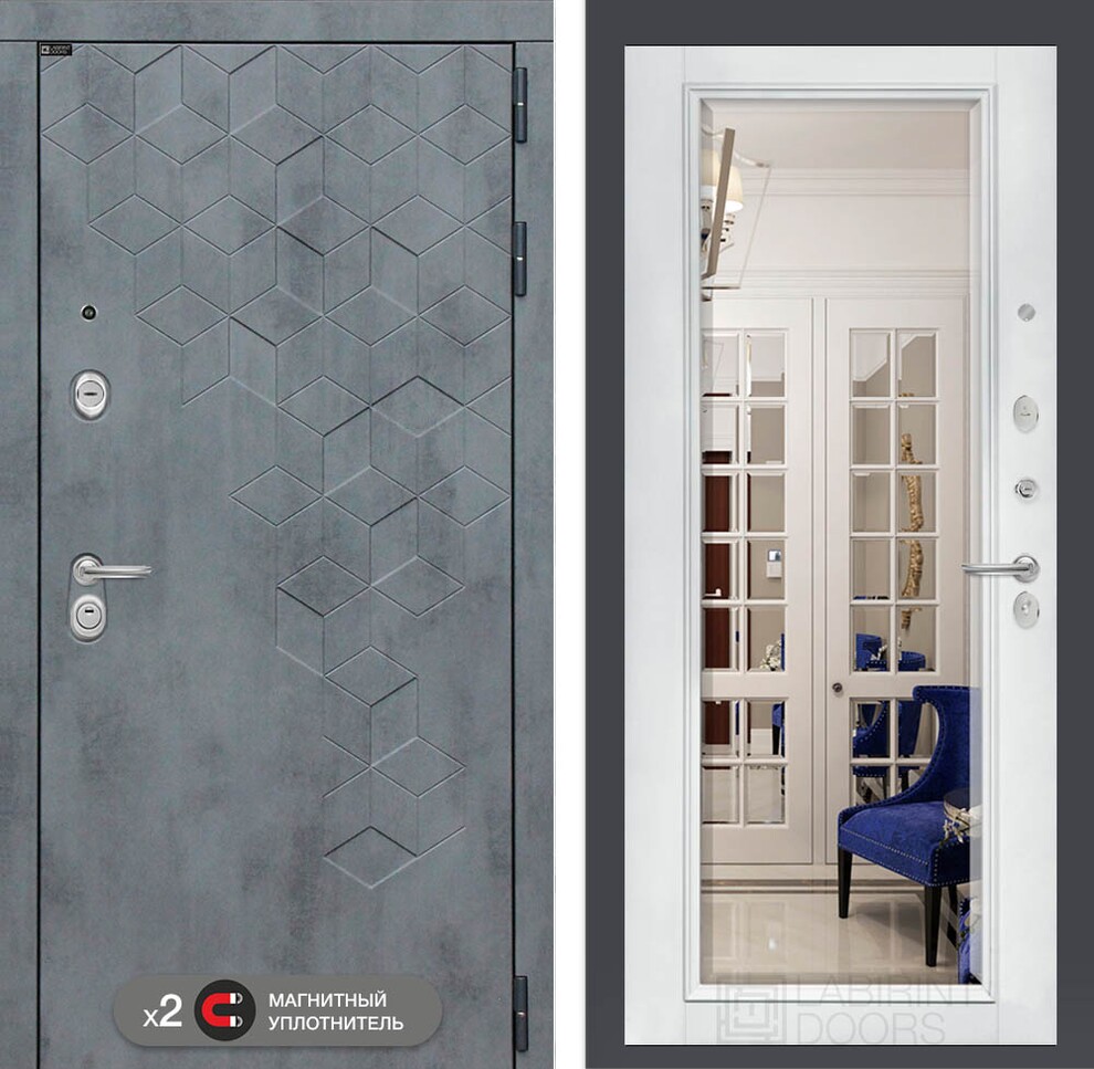 Входная дверь ART LT-06 | внутри с Зеркалом Фацет - Белый софт