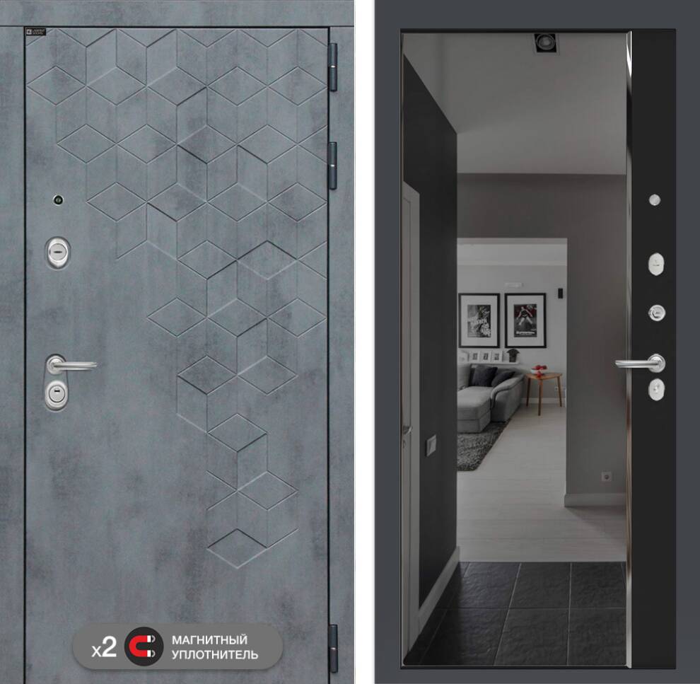 Входная дверь ART LT-06 | внутри с зеркалом Панорама с тонировкой - Черный кварц