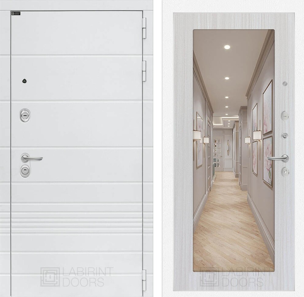 Входная дверь ART LT-07 | внутри с Зеркалом 18 - Сандал белый