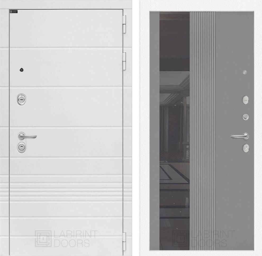 Входная дверь ART LT-07 | внутри с Зеркалом 32 тонированным - Серый рельеф софт