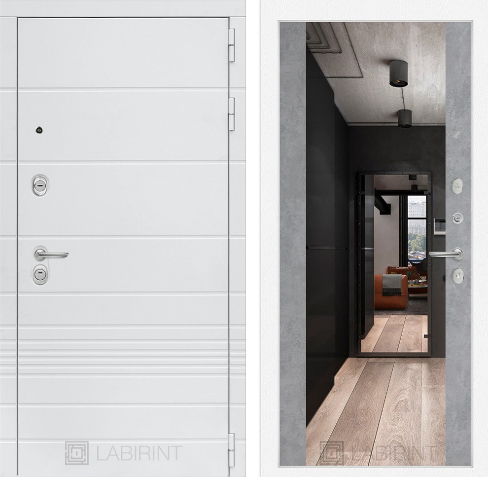 Входная дверь ART LT-07 | внутри с Зеркалом Максимум - Бетон светлый