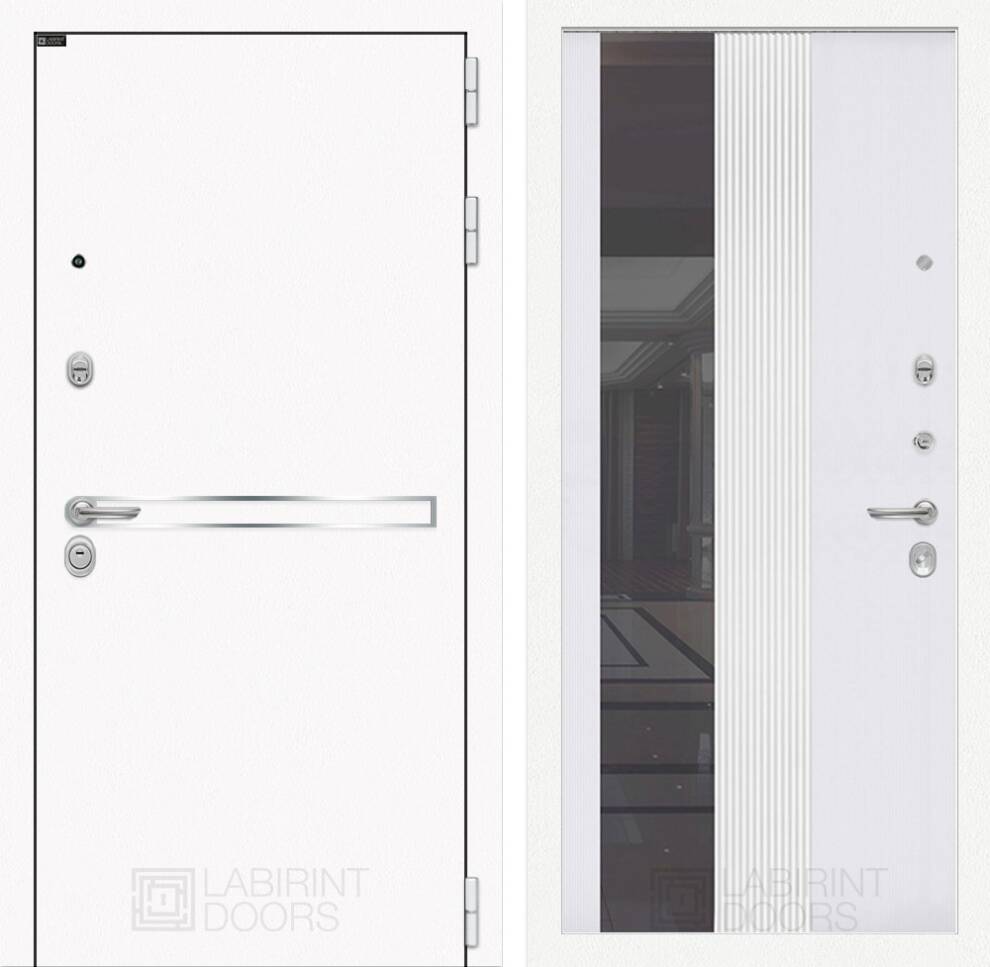 Входная дверь ART LT-08 | внутри с Зеркалом 32 тонированным - Белый рельеф софт