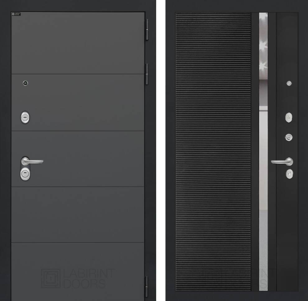 Входная дверь ART LT-09 | внутри 31 - Черный кварц, зеркальная вставка с тонировкой