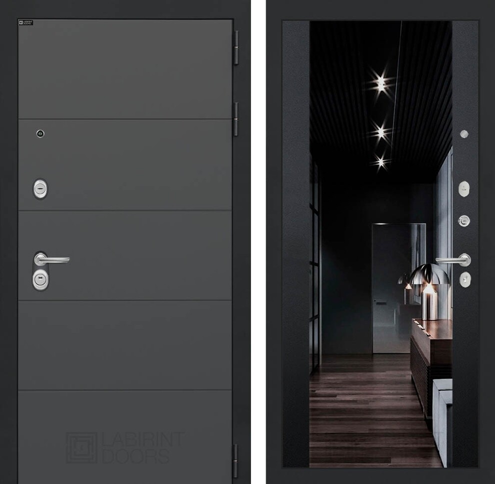 Входная дверь ART LT-09 | внутри с тонированным зеркалом Максимум - Черный кварц