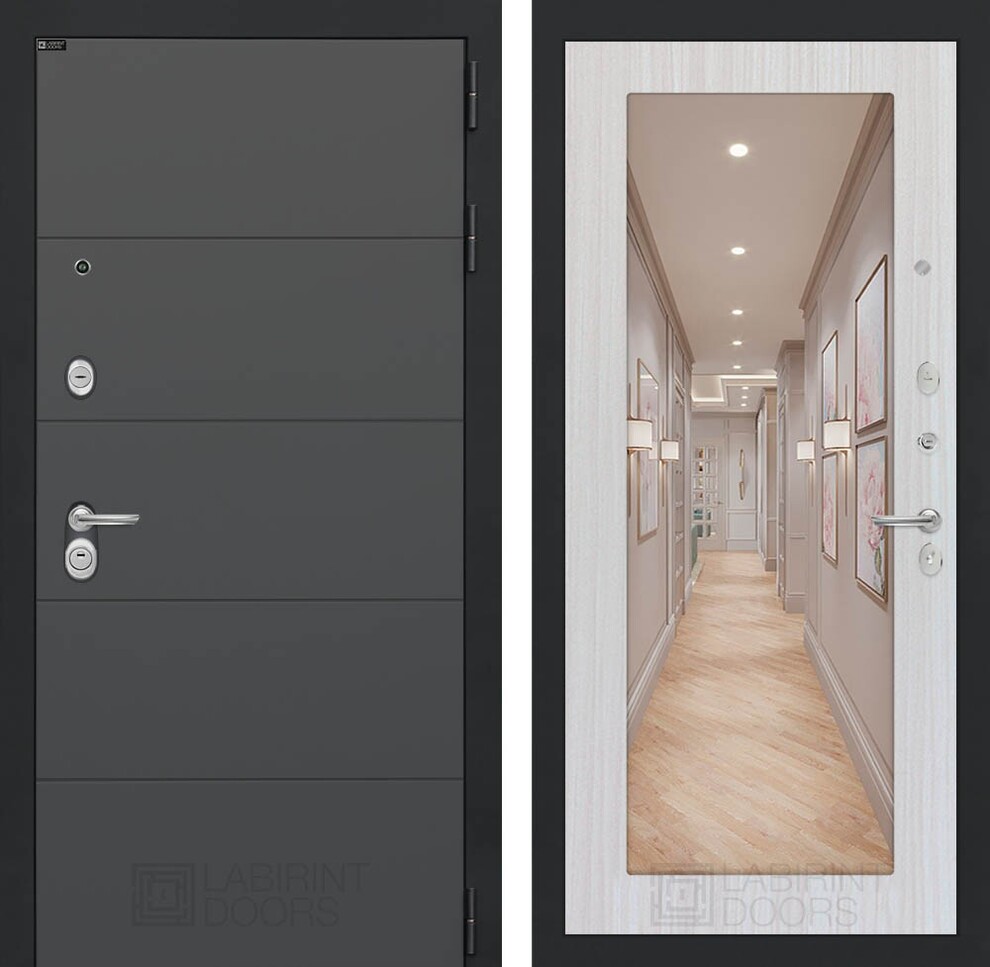 Входная дверь ART LT-09 | внутри с Зеркалом 18 - Сандал белый