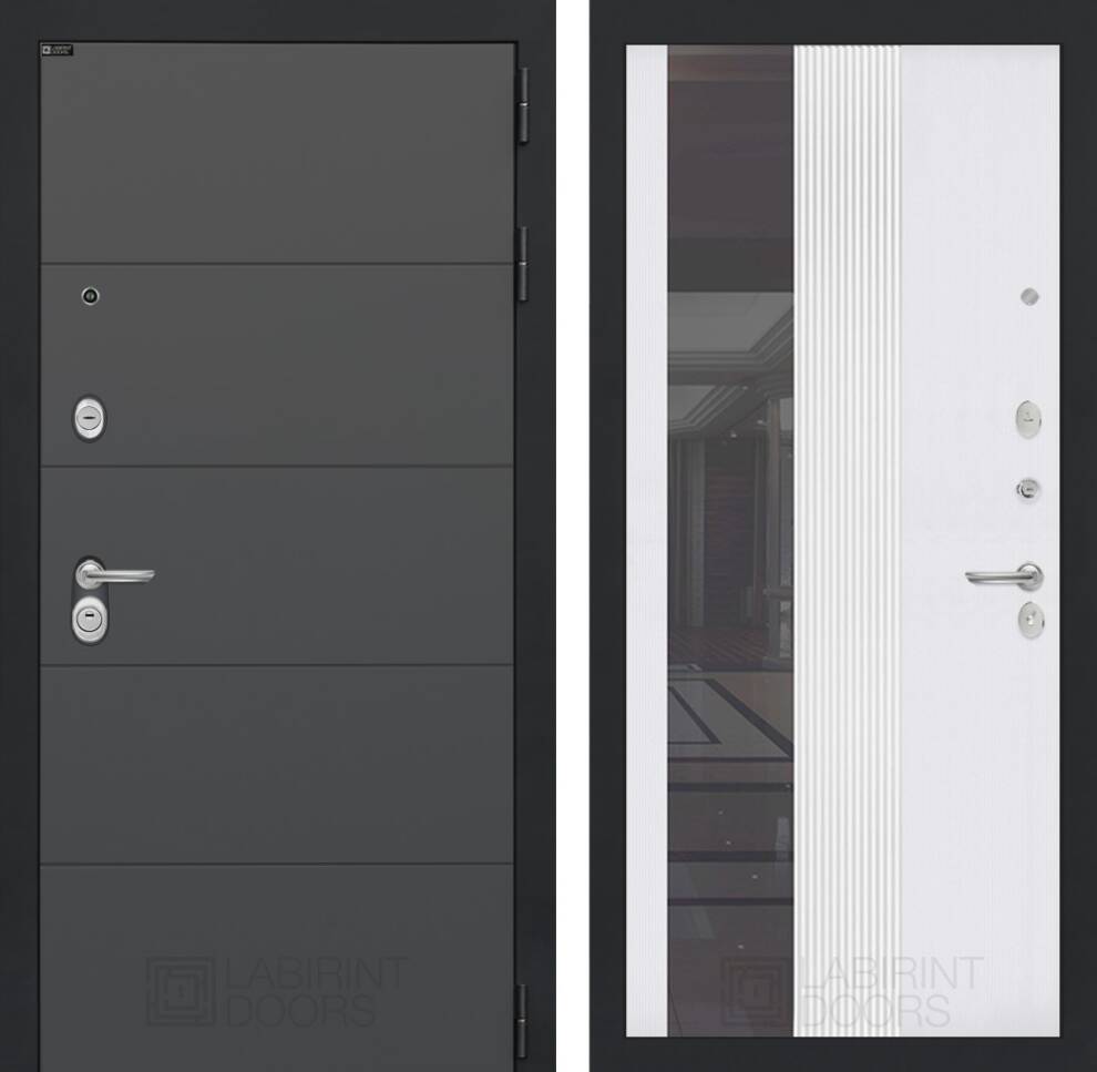 Входная дверь ART LT-09 | внутри с Зеркалом 32 тонированным - Белый рельеф софт