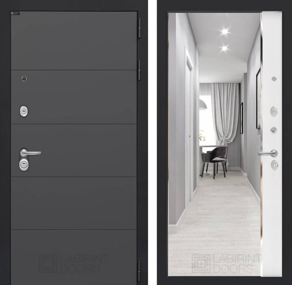 Входная дверь ART LT-09 | внутри с зеркалом Панорама - Белый софт