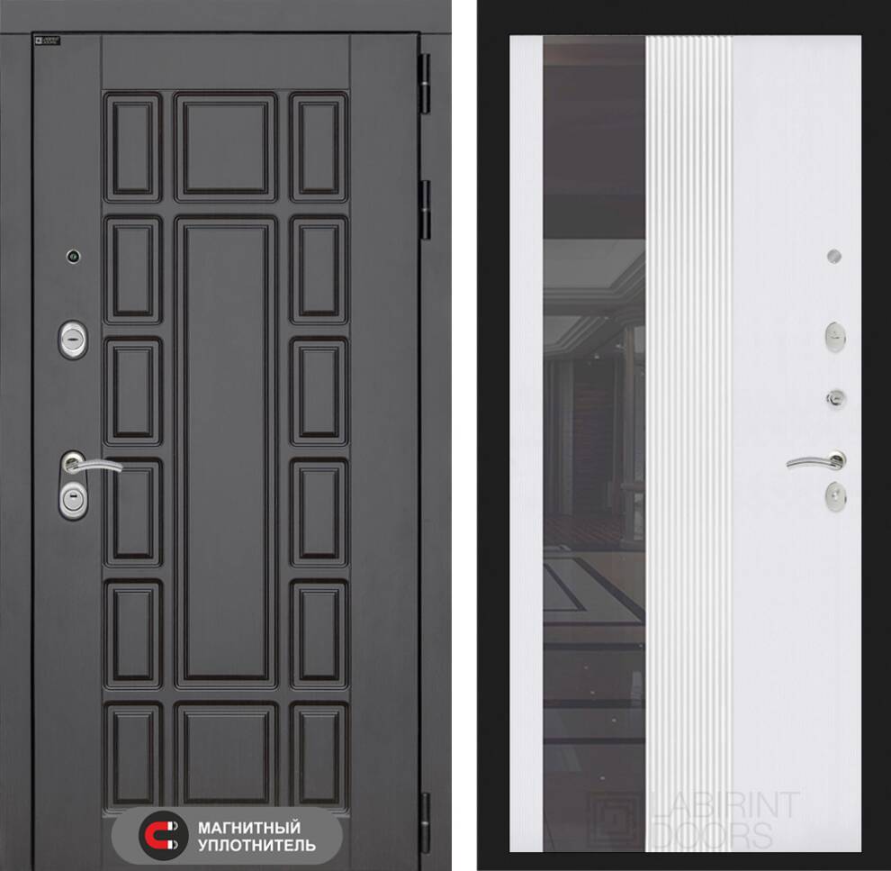 Входная дверь ART LT-11 | внутри с Зеркалом 32 тонированным - Белый рельеф софт