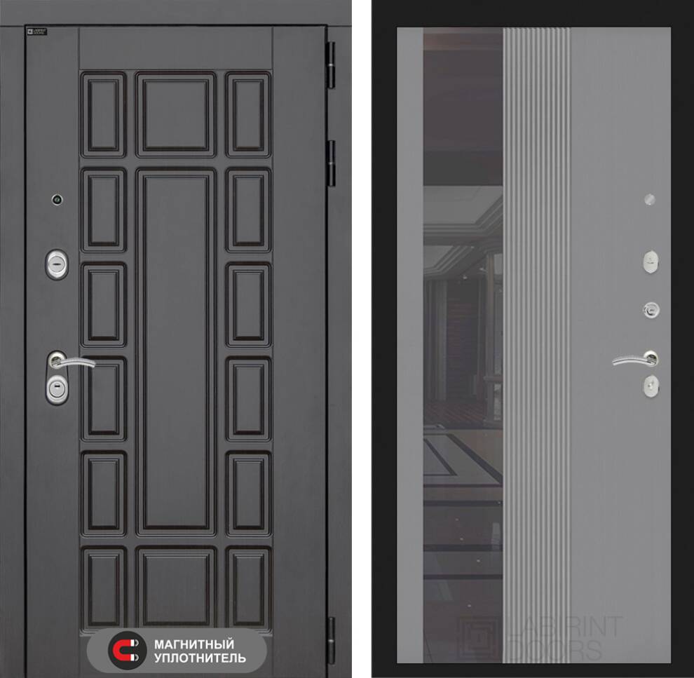 Входная дверь ART LT-11 | внутри с Зеркалом 32 тонированным - Серый рельеф софт