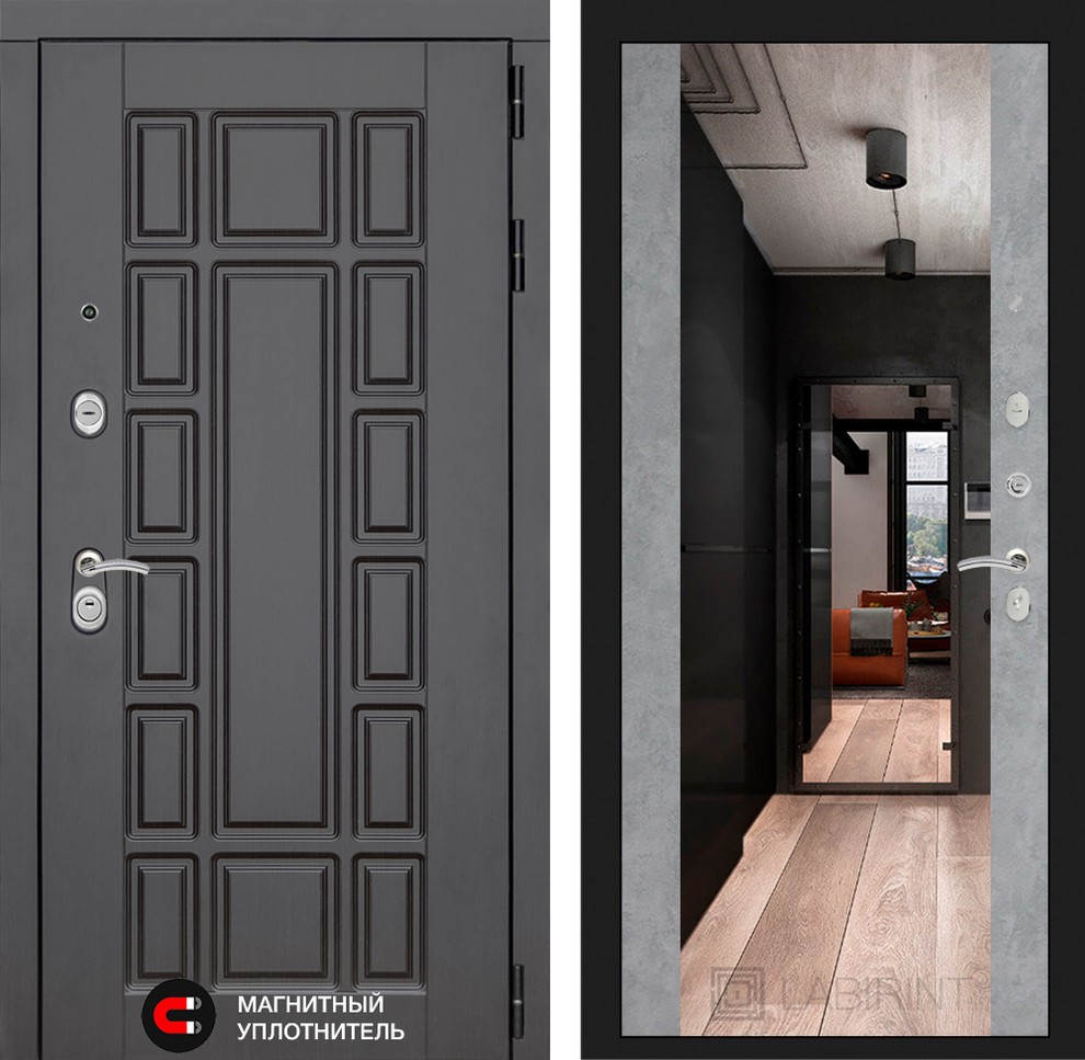 Входная дверь ART LT-11 | внутри с Зеркалом Максимум - Бетон светлый