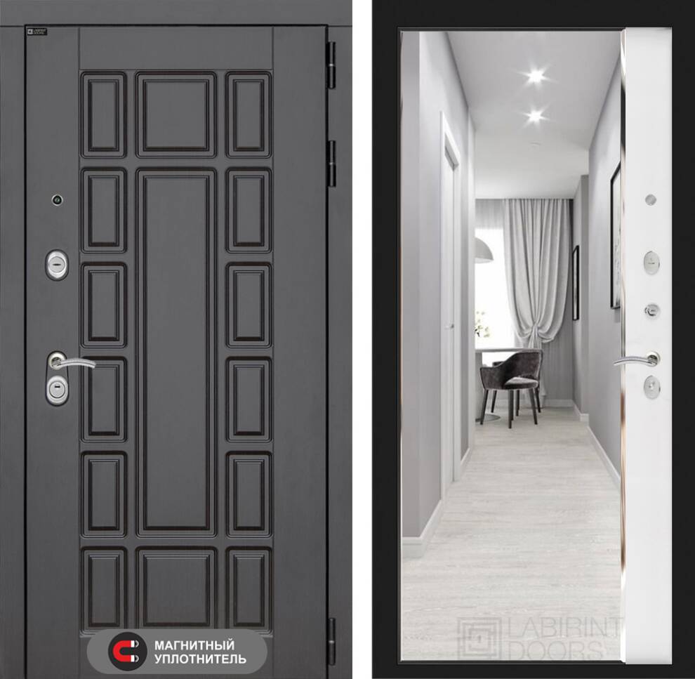 Входная дверь ART LT-11 | внутри с зеркалом Панорама - Белый софт