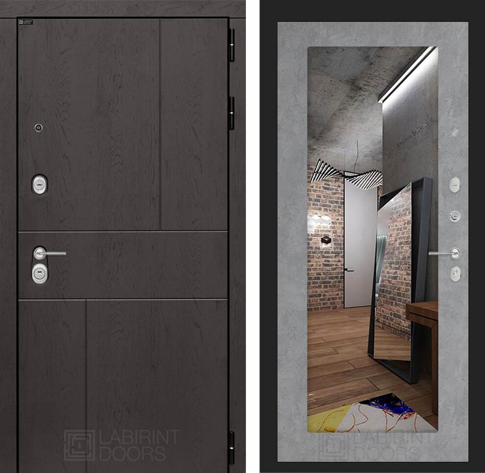 Входная дверь ART LT-12 | внутри с Зеркалом 18 - Бетон светлый