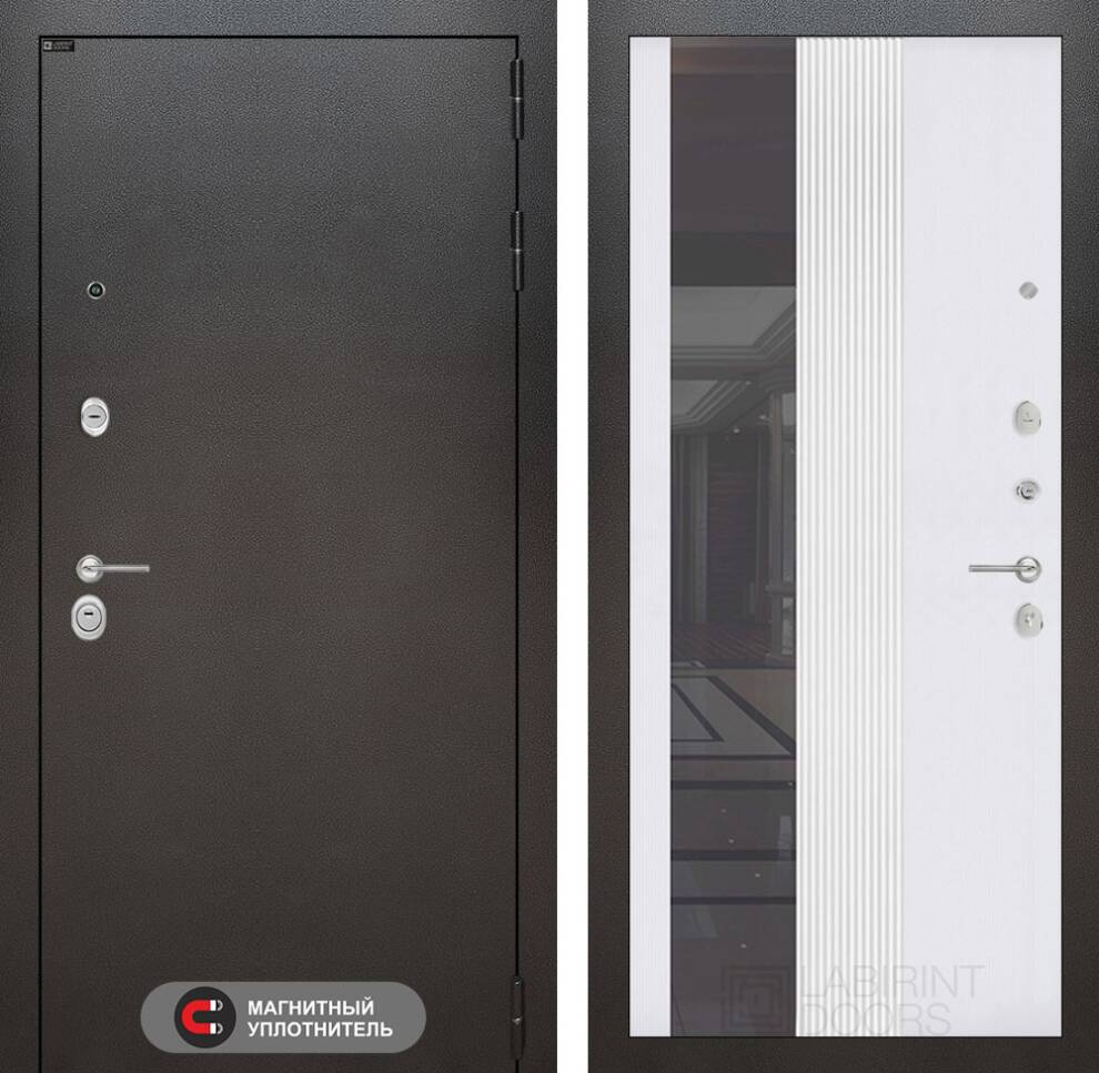 Входная дверь ART LT-13 | внутри с Зеркалом 32 тонированным - Белый рельеф софт