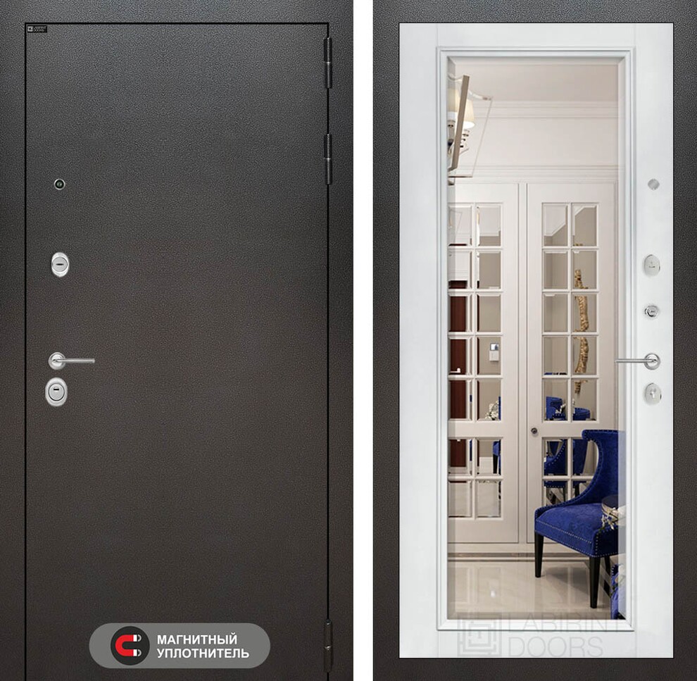 Входная дверь ART LT-13 | внутри с Зеркалом Фацет - Белый софт