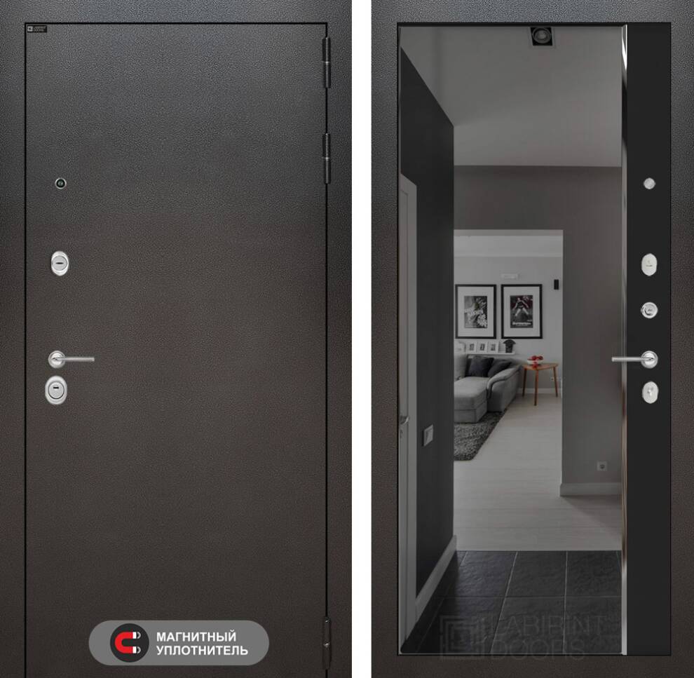 Входная дверь ART LT-13 | внутри с зеркалом Панорама с тонировкой - Черный кварц