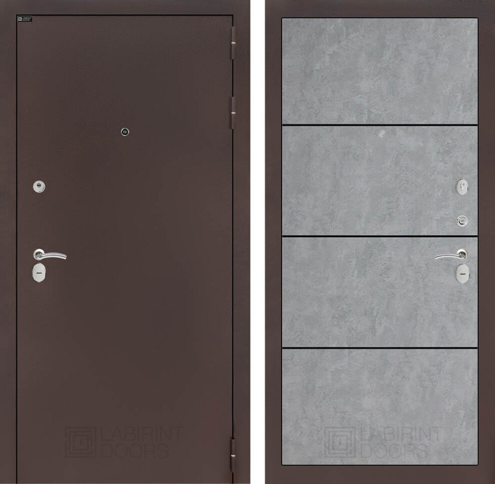 Входная дверь ART LT-14 | внутри антик медный 25 - Бетон светлый, черный молдинг