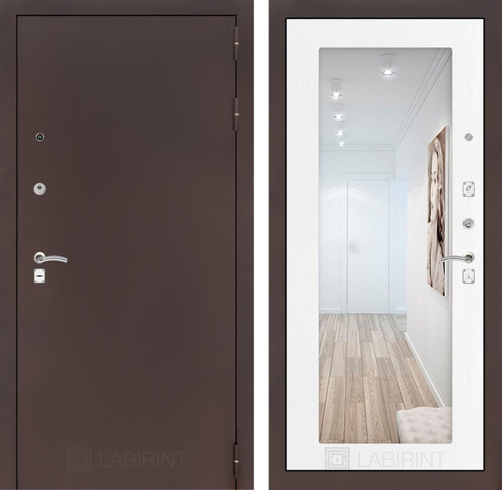 Входная дверь ART LT-14 | внутри антик медный с Зеркалом 18 - Белое дерево