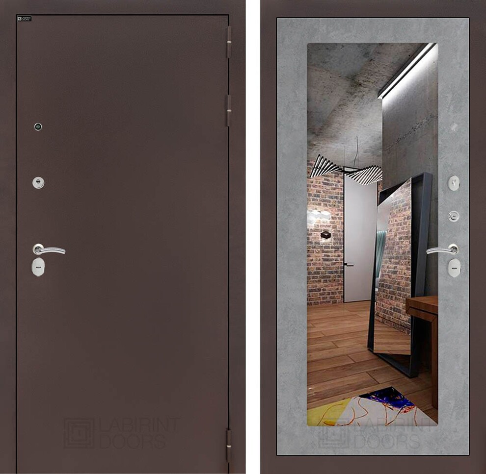 Входная дверь ART LT-14 | внутри антик медный с Зеркалом 18 - Бетон светлый