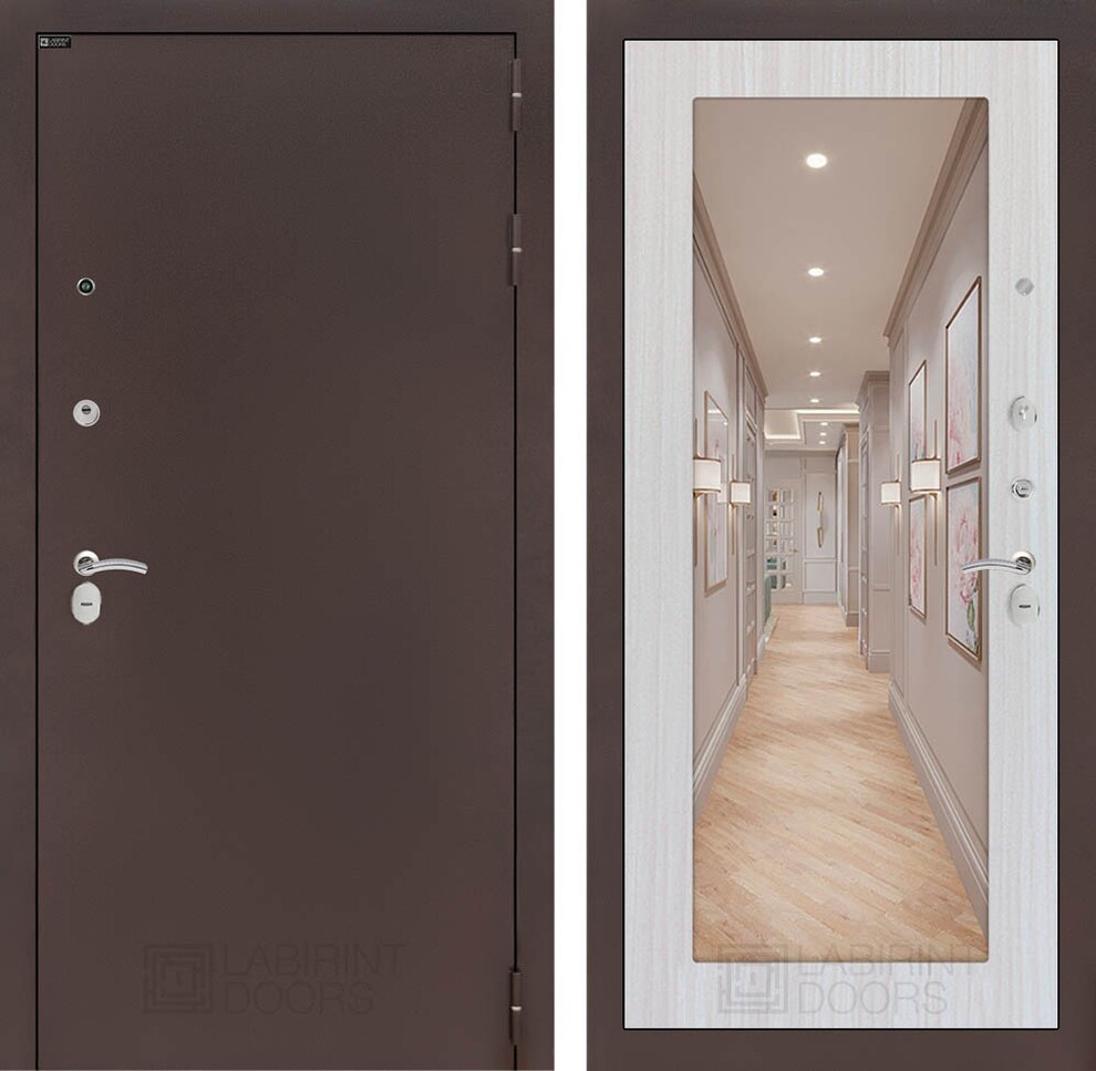 Входная дверь ART LT-14 | внутри антик медный с Зеркалом 18 - Сандал белый