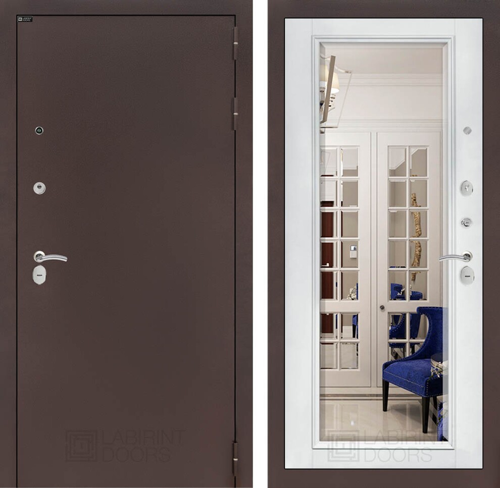 Входная дверь ART LT-14 | внутри антик медный с Зеркалом Фацет - Белый софт