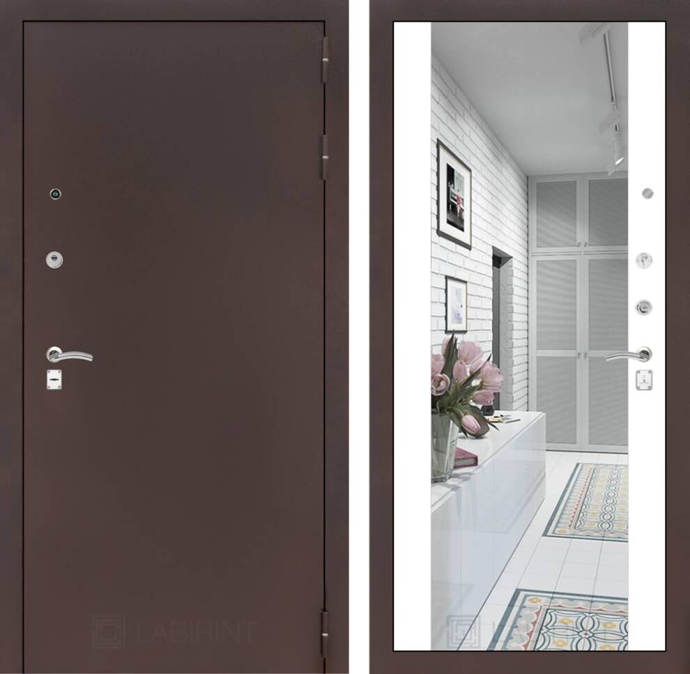 Входная дверь ART LT-14 | внутри антик медный с Зеркалом Максимум - Белый софт