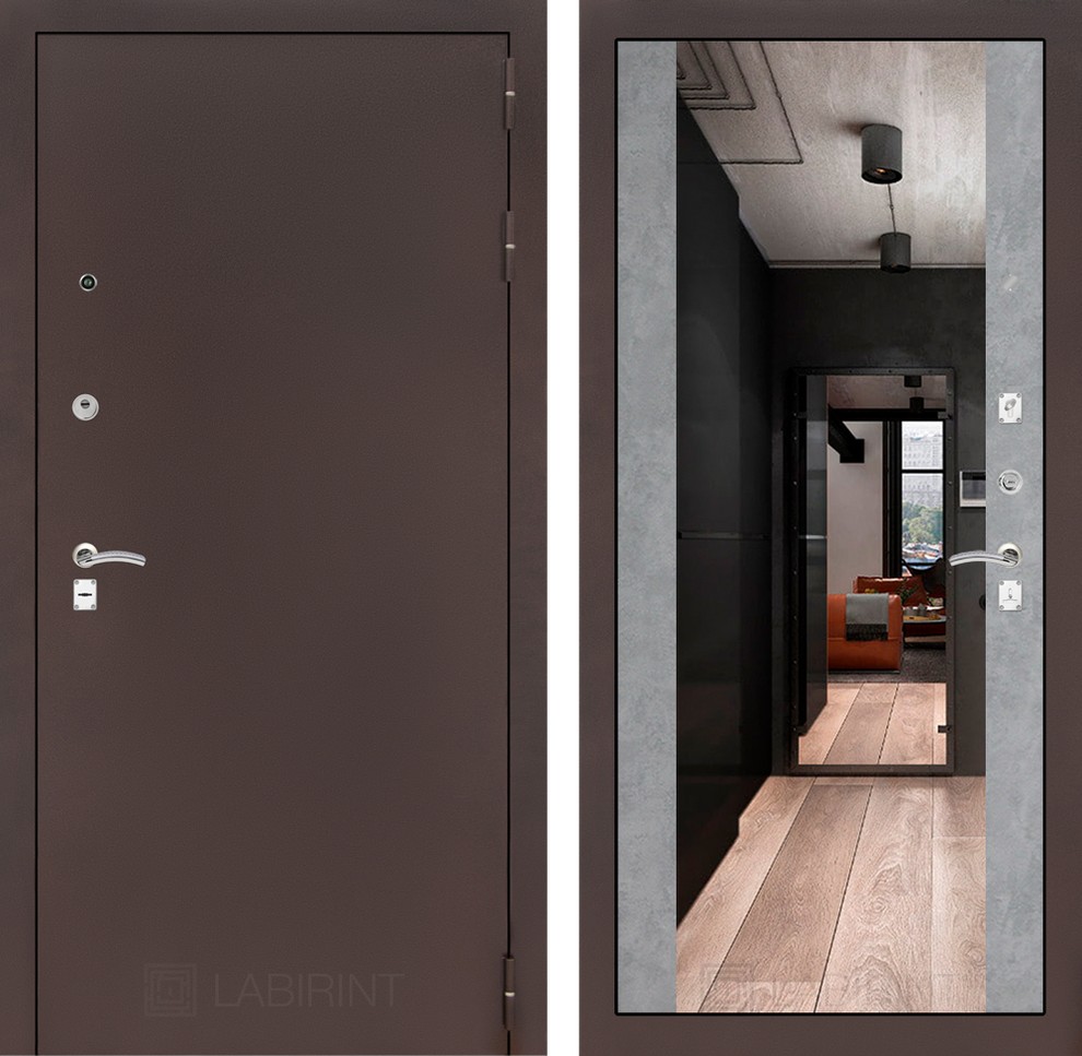 Входная дверь ART LT-14 | внутри антик медный с Зеркалом Максимум - Бетон светлый