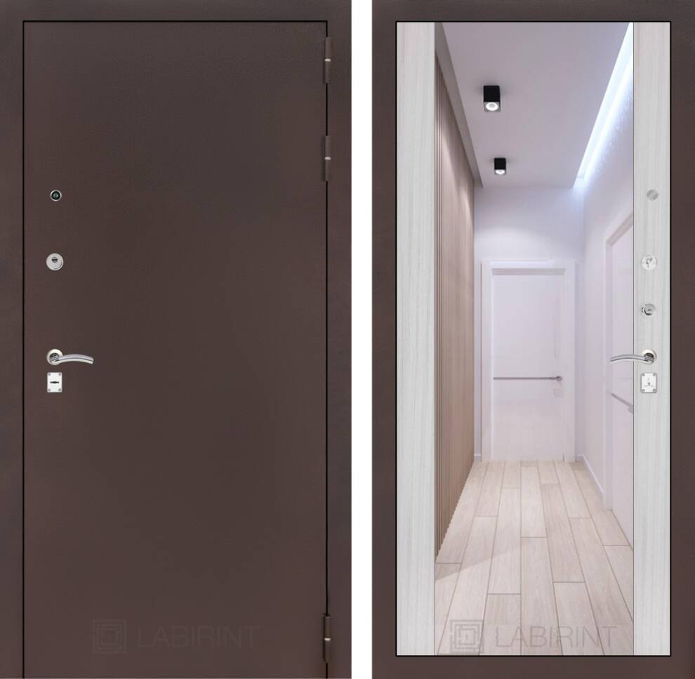 Входная дверь ART LT-14 | внутри антик медный с Зеркалом Максимум - Сандал белый