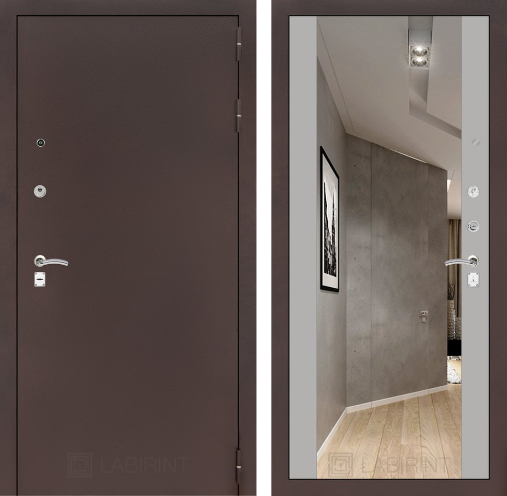 Входная дверь ART LT-14 | внутри антик медный с Зеркалом Максимум - Софт Грей