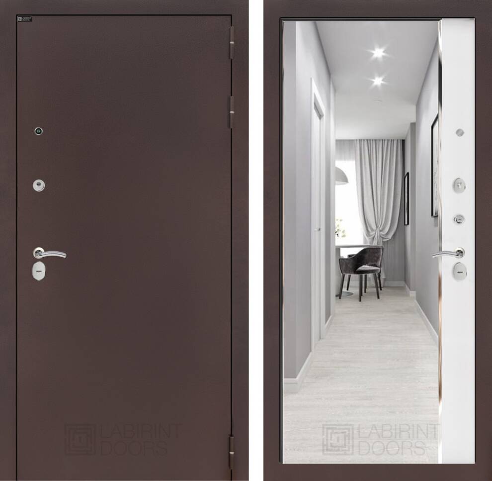 Входная дверь ART LT-14 | внутри антик медный с зеркалом Панорама - Белый софт