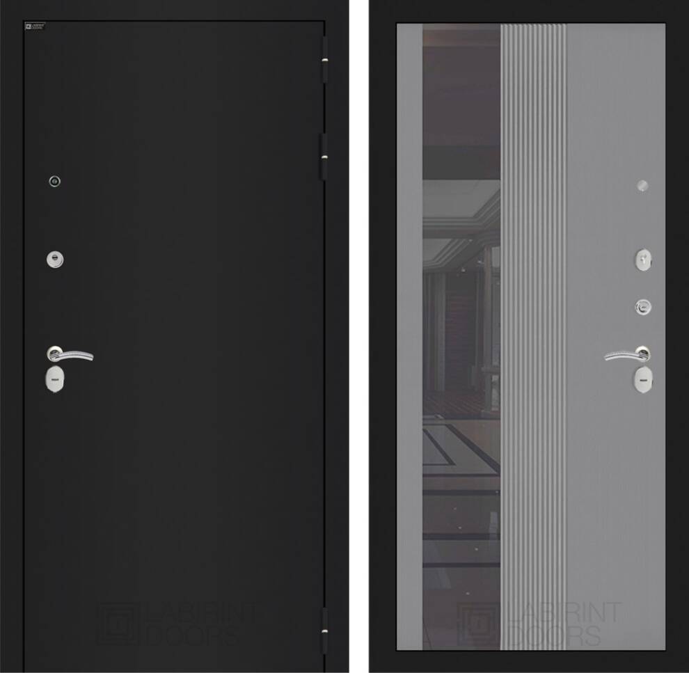 Входная дверь ART LT-15 | внутри с Зеркалом 32 тонированным - Серый рельеф софт