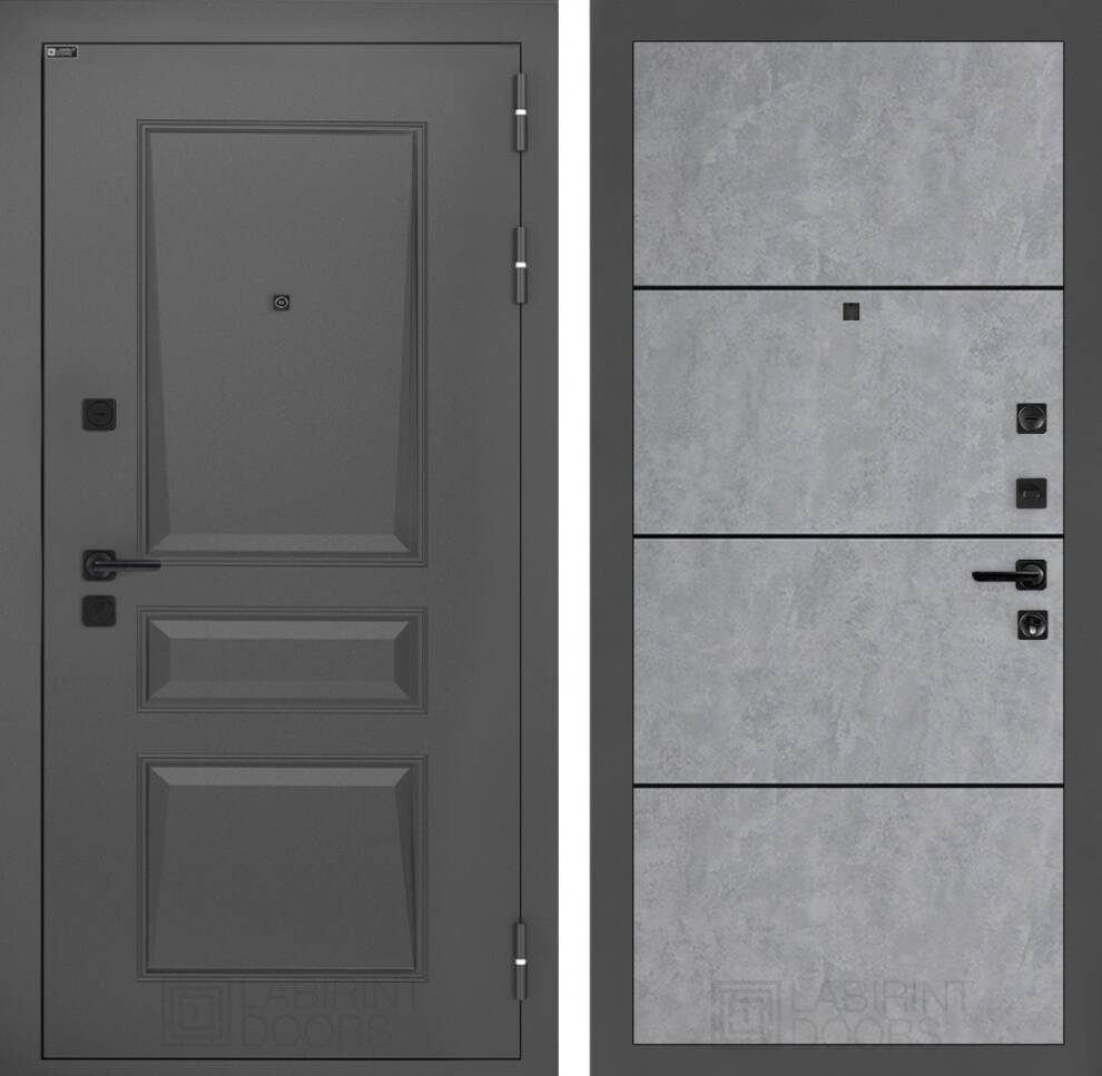 Входная дверь ART LT-16 | внутри 25 - Бетон светлый, черный молдинг