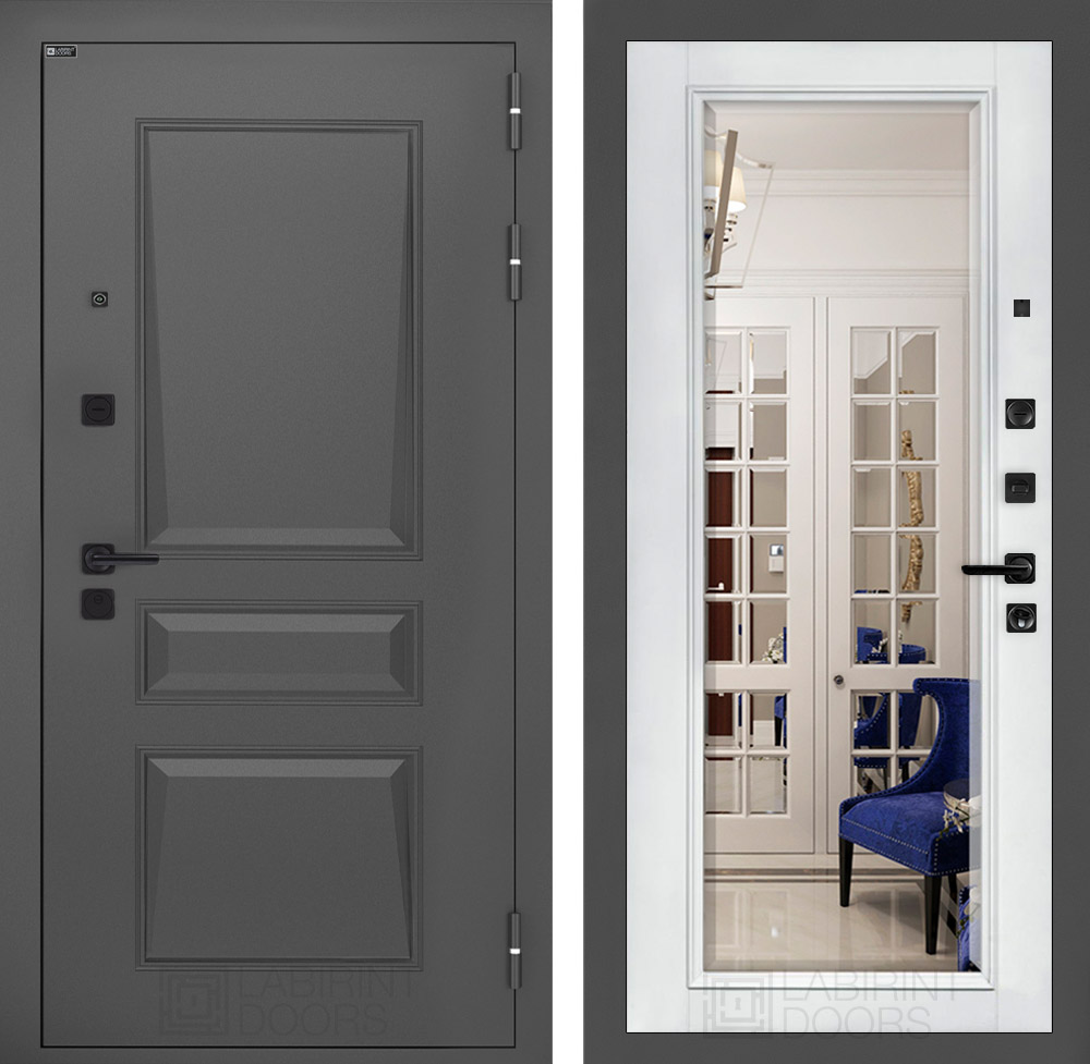 Входная дверь ART LT-16 | внутри с Зеркалом Фацет - Белый софт