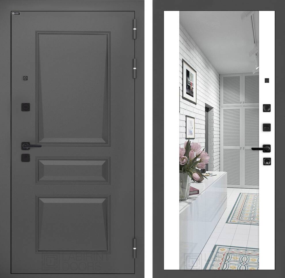 Входная дверь ART LT-16 | внутри с Зеркалом Максимум - Белый софт